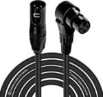 Balanced XLR Cable Male to Right Angle Female – 20 Feet Black – Pro 3-Pin Microphone Connector for Powered Speakers, Audio Interface or Mixer for Live Performance & Recording