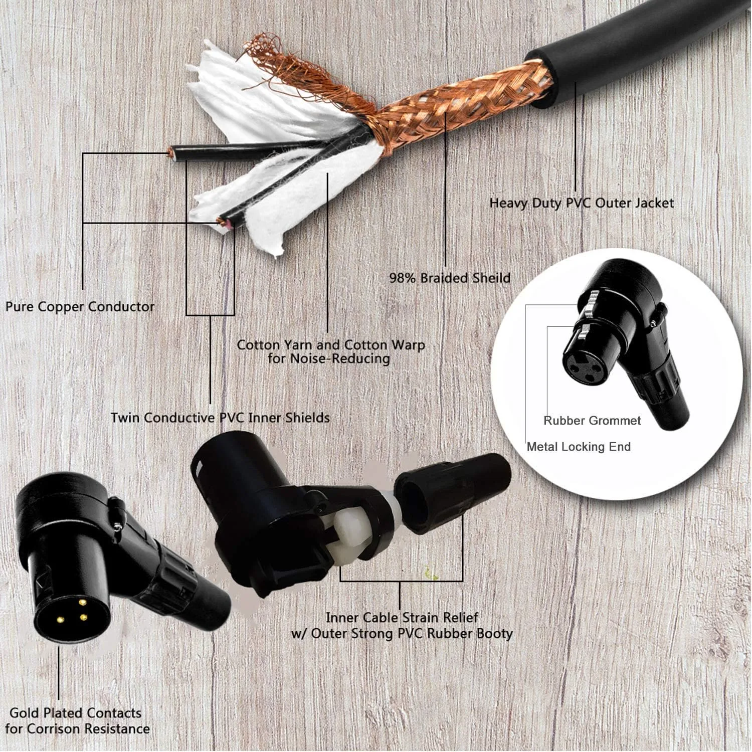ROAD READY CONSTRUCTION – Quality Design Features Twin Conductive PVC Inner Shields, 98% Braided Shield, Noise-Reducing Yarn Wrap & Gold Plated Contact Points w/ Strain Relief
