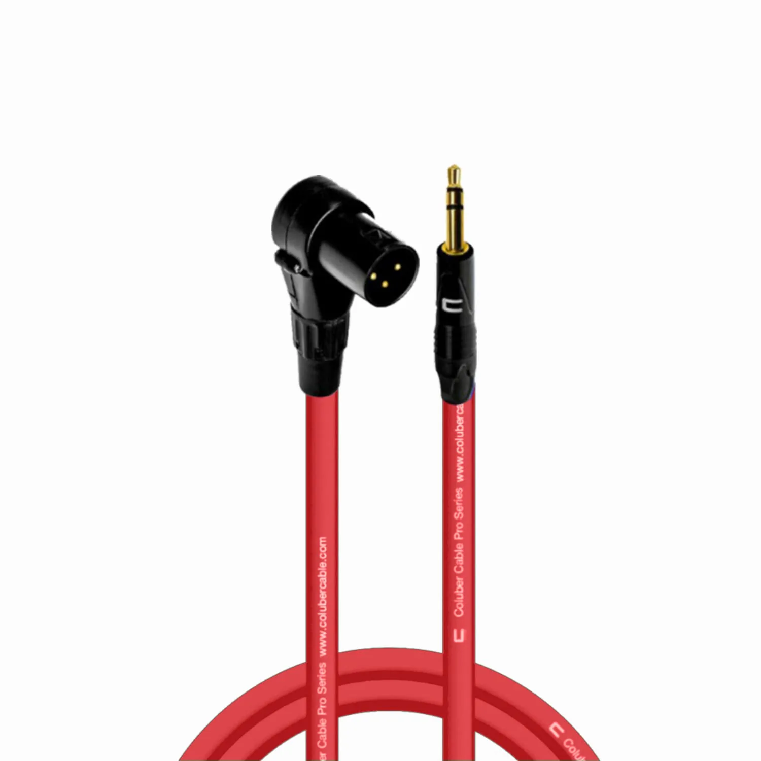 COLUBER CABLE Right Angle 3-Pin XLR Male to 3.5 TRS Male – 10 Feet – Red – Pro 3-Pin Microphone Connector for Powered Speakers, Audio Interface or Mixer for Live Performance & Recording